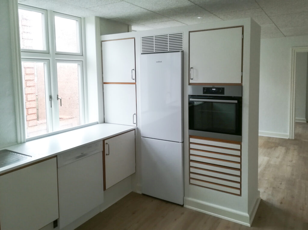 Lejligheden indeholder nyt køkken i forbindelse med et lækkert køkkenalrum, nyt badeværelse, stor stue og spisestue hvor du kan nyde et fantastisk lysindfald fra de store vinduer. Her er også entre, bryggers, soveværelse og et ekstra værelse. En fantastisk mulighed for at bo i gåafstand til restauranter og gode shoppingmuligheder.